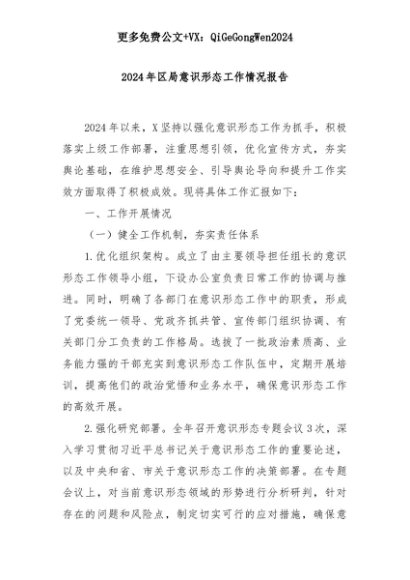 【七哥公文】2025年:2024年区局意识形态工作情况报告+更多免费公文+VX:QiGeGongWen2024+更多免费公文+VX:QiGeGongWen2024