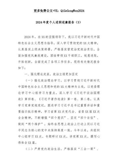 【七哥公文】2025年:2024年度个人述职述廉报告(3)+更多免费公文+VX:QiGeGongWen2024+更多免费公文+VX:QiGeGongWen2024