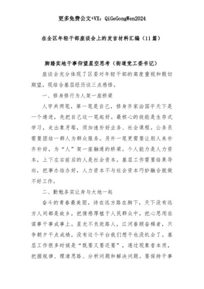 【七哥公文】2025年:(11篇)在全区年轻干部座谈会上的发言材料汇编+更多免费公文+VX:QiGeGongWen2024+更多免费公文+VX:QiGeGongWen2024