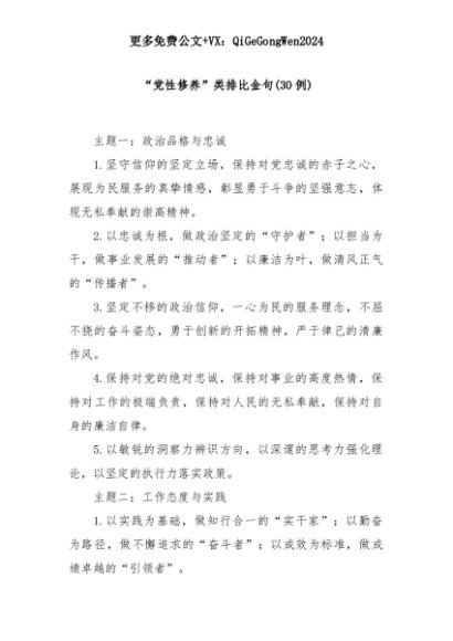 【七哥公文】2025年:(30例)“党性修养”类排比金句+更多免费公文+VX:QiGeGongWen2024+更多免费公文+VX:QiGeGongWen2024