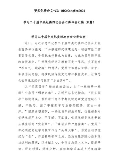 【七哥公文】2025年:(8篇)学习二十届中央纪委四次全会心得体会汇编+更多免费公文+VX:QiGeGongWen2024+更多免费公文+VX:QiGeGongWen2024