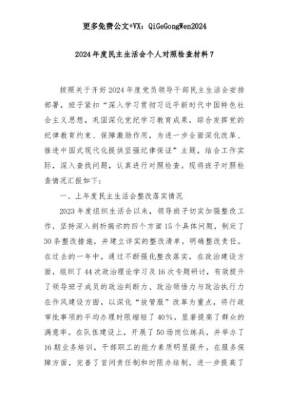 【七哥公文】2025年:2024年度民主生活会个人对照检查材料7+更多免费公文+VX:QiGeGongWen2024+更多免费公文+VX:QiGeGongWen2024