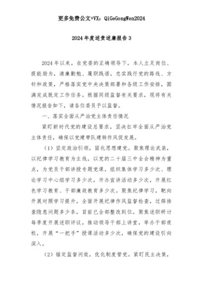 【七哥公文】2025年:2024年度述责述廉报告3+更多免费公文+VX:QiGeGongWen2024+更多免费公文+VX:QiGeGongWen2024