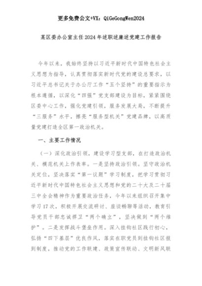 【七哥公文】2025年:某区委办公室主任2024年述职述廉述党建工作报告+更多免费公文+VX:QiGeGongWen2024+更多免费公文+VX:QiGeGongWen2024