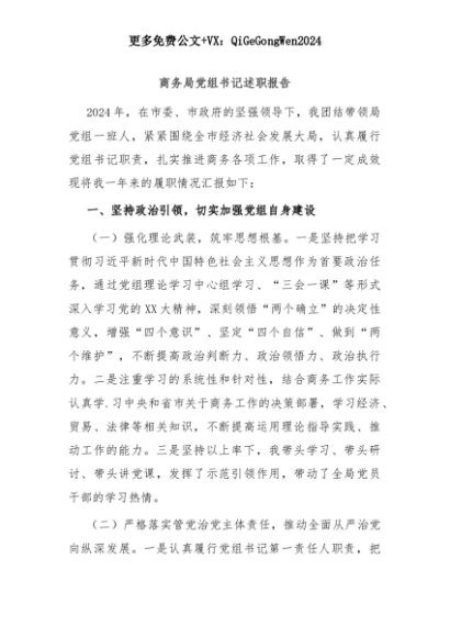 【七哥公文】2025年:商务局党组书记述职报告+更多免费公文+VX:QiGeGongWen2024+更多免费公文+VX:QiGeGongWen2024