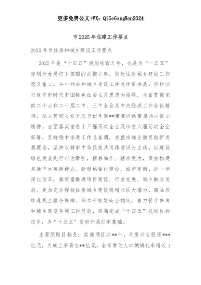 【七哥公文】2025年:市2025年住建工作要点+更多免费公文+VX:QiGeGongWen2024+更多免费公文+VX:QiGeGongWen2024