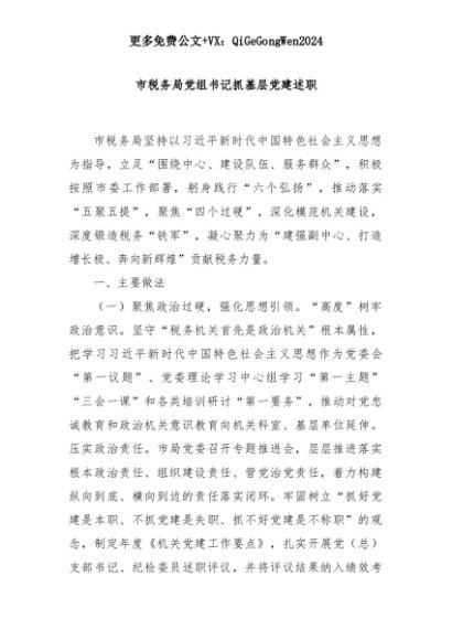 【七哥公文】2025年:市税务局党组书记抓基层党建述职+更多免费公文+VX:QiGeGongWen2024+更多免费公文+VX:QiGeGongWen2024