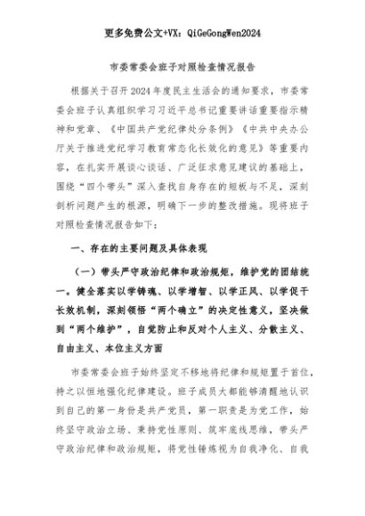 【七哥公文】2025年:市委常委会班子对照检查情况报告+更多免费公文+VX:QiGeGongWen2024+更多免费公文+VX:QiGeGongWen2024