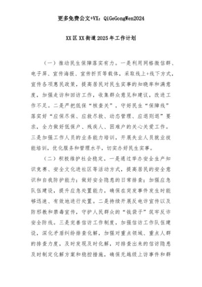 【七哥公文】2025年:XX区XX街道2025年工作计划+更多免费公文+VX:QiGeGongWen2024+更多免费公文+VX:QiGeGongWen2024