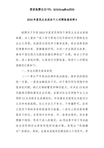 【七哥公文】2025年:2024年度民主生活会个人对照检查材料6+更多免费公文+VX:QiGeGongWen2024+更多免费公文+VX:QiGeGongWen2024
