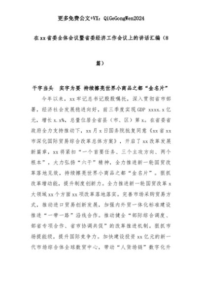 【七哥公文】2025年:(8篇)在xx省委全体会议暨省委经济工作会议上的讲话汇编+更多免费公文+VX:QiGeGongWen2024+更多免费公文+VX:QiGeGongWen2024