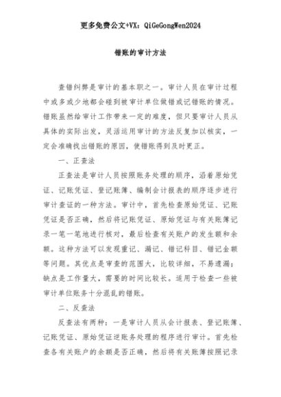 【七哥公文】2025年:错账的审计方法+更多免费公文+VX:QiGeGongWen2024+更多免费公文+VX:QiGeGongWen2024