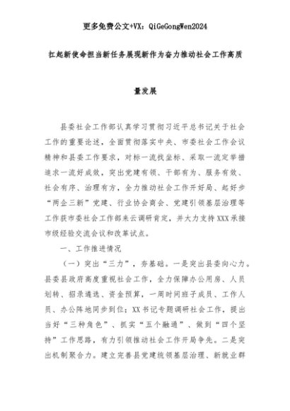 【七哥公文】2025年:扛起新使命担当新任务展现新作为奋力推动社会工作高质量发展+更多免费公文+VX:QiGeGongWen2024+更多免费公文+VX:QiGeGongWen2024