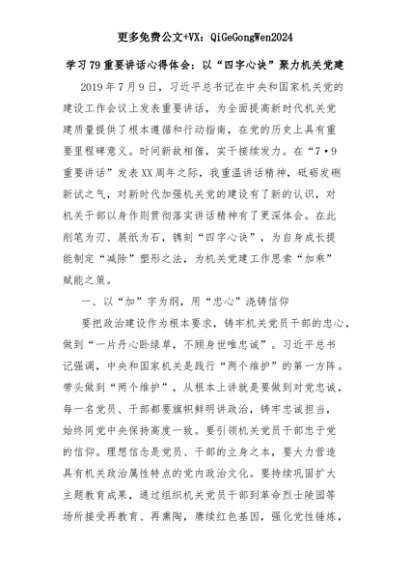 【七哥公文】2025年:学习79重要讲话心得体会:以“四字心诀”聚力机关党建+更多免费公文+VX:QiGeGongWen2024+更多免费公文+VX:QiGeGongWen2024