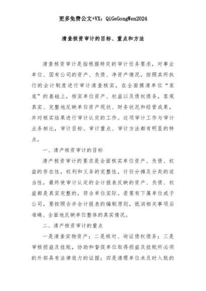 【七哥公文】2025年:清查核资审计的目标、重点和方法+更多免费公文+VX:QiGeGongWen2024+更多免费公文+VX:QiGeGongWen2024