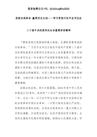 【七哥公文】2025年:坚持自我革命 赢得历史主动——学习贯彻习近平总书记在二十届中央纪委四次全会重要讲话精神+更多免费公文+VX:QiGeGongWen2024+更多免费公文+VX:QiGeGongWen2024