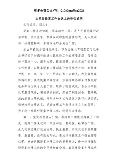 【七哥公文】2025年:在政协提案工作会议上的讲话提纲+更多免费公文+VX:QiGeGongWen2024+更多免费公文+VX:QiGeGongWen2024