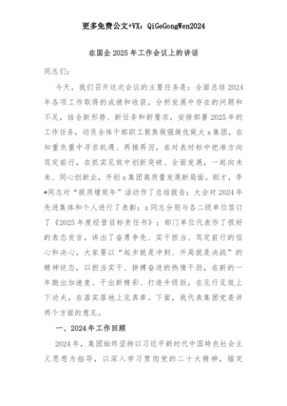 【七哥公文】2025年:在国企2025年工作会议上的讲话+更多免费公文+VX:QiGeGongWen2024+更多免费公文+VX:QiGeGongWen2024