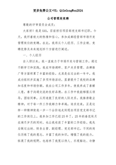 【七哥公文】2025年:公司管理岗竞聘+更多免费公文+VX:QiGeGongWen2024+更多免费公文+VX:QiGeGongWen2024