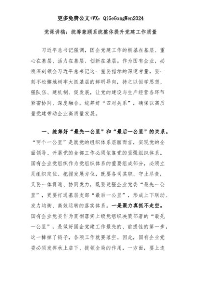 【七哥公文】2025年:党课讲稿:统筹兼顾系统整体提升党建工作质量+更多免费公文+VX:QiGeGongWen2024+更多免费公文+VX:QiGeGongWen2024