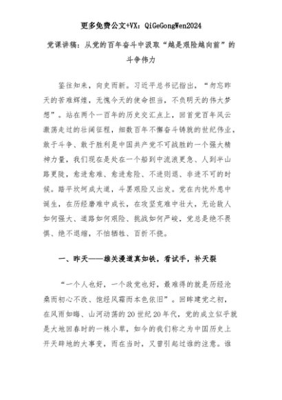 【七哥公文】2025年:党课讲稿:从党的百年奋斗中汲取“越是艰险越向前”的斗争伟力+更多免费公文+VX:QiGeGongWen2024+更多免费公文+VX:QiGeGongWen2024