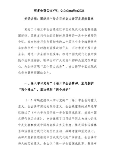 【七哥公文】2025年:党课讲稿:围绕三个努力目标奋力谱写发展新篇章+更多免费公文+VX:QiGeGongWen2024+更多免费公文+VX:QiGeGongWen2024