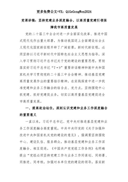 【七哥公文】2025年:党课讲稿:坚持党建业务深度融合,以高质量党建引领保障我市高质量发展+更多免费公文+VX:QiGeGongWen2024+更多免费公文+VX:QiGeGongWen2024