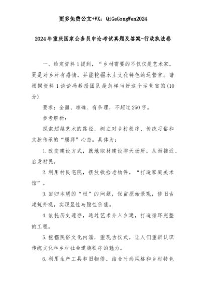 【七哥公文】2025年:2024年重庆国家公务员申论考试真题及答案-行政执法卷+更多免费公文+VX:QiGeGongWen2024+更多免费公文+VX:QiGeGongWen2024