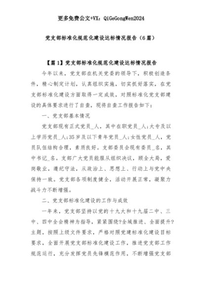 【七哥公文】2025年:(6篇)党支部标准化规范化建设达标情况报告+更多免费公文+VX:QiGeGongWen2024+更多免费公文+VX:QiGeGongWen2024