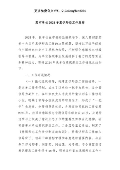 【七哥公文】2025年:某市单位2024年意识形态工作总结+更多免费公文+VX:QiGeGongWen2024+更多免费公文+VX:QiGeGongWen2024