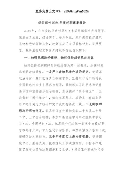 【七哥公文】2025年:组织部长2024年度述职述廉报告+更多免费公文+VX:QiGeGongWen2024+更多免费公文+VX:QiGeGongWen2024