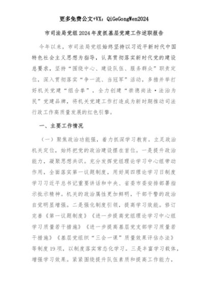 【七哥公文】2025年:市司法局党组2024年度抓基层党建工作述职报告+更多免费公文+VX:QiGeGongWen2024+更多免费公文+VX:QiGeGongWen2024