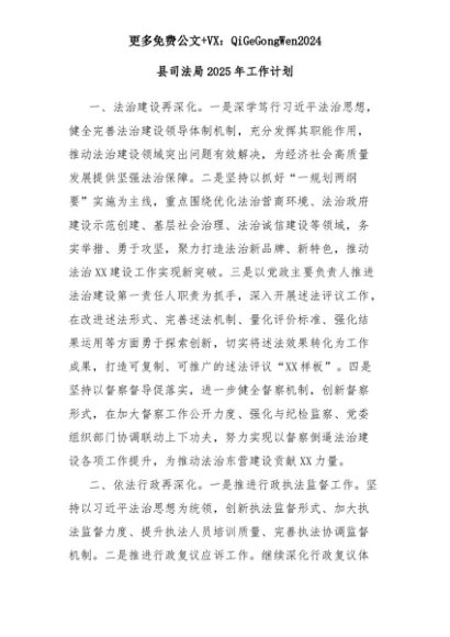 【七哥公文】2025年:县司法局2025年工作计划+更多免费公文+VX:QiGeGongWen2024+更多免费公文+VX:QiGeGongWen2024