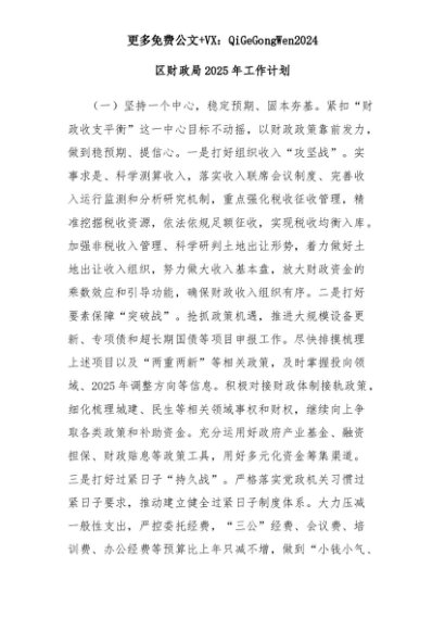 【七哥公文】2025年:区财政局2025年工作计划+更多免费公文+VX:QiGeGongWen2024+更多免费公文+VX:QiGeGongWen2024