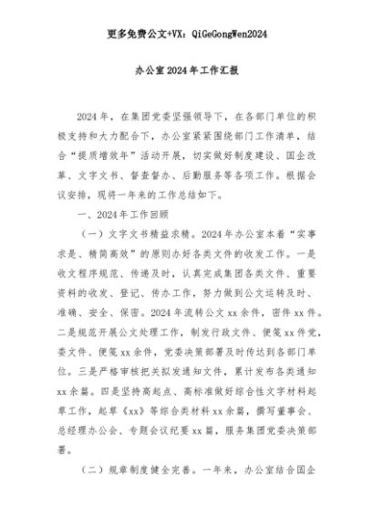 【七哥公文】2025年:办公室2024年工作汇报+更多免费公文+VX:QiGeGongWen2024+更多免费公文+VX:QiGeGongWen2024