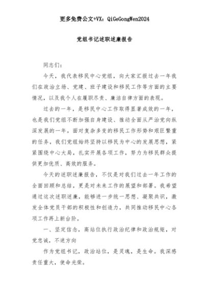 【七哥公文】2025年:党组书记述职述廉报告+更多免费公文+VX:QiGeGongWen2024+更多免费公文+VX:QiGeGongWen2024