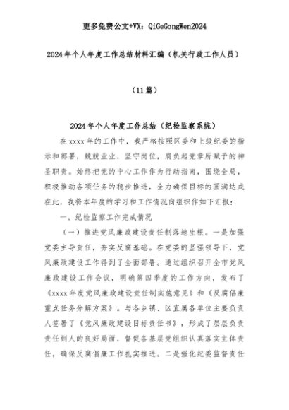 【七哥公文】2025年:(11篇)2024年个人年度工作总结材料汇编(机关行政工作人员)+更多免费公文+VX:QiGeGongWen2024+更多免费公文+VX:QiGeGongWen2024