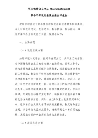【七哥公文】2025年:领导干部政治表现自查自评报告+更多免费公文+VX:QiGeGongWen2024+更多免费公文+VX:QiGeGongWen2024