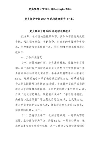 【七哥公文】2025年:(7篇)党员领导干部2024年述职述廉报告+更多免费公文+VX:QiGeGongWen2024+更多免费公文+VX:QiGeGongWen2024