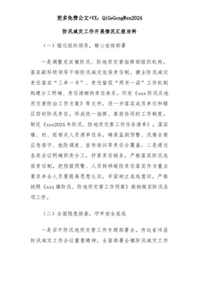 【七哥公文】2025年:防汛减灾工作开展情况汇报材料+更多免费公文+VX:QiGeGongWen2024+更多免费公文+VX:QiGeGongWen2024