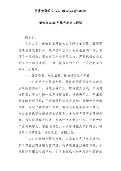 【七哥公文】2025年:镇长在2025年镇务虚会上讲话+更多免费公文+VX:QiGeGongWen2024+更多免费公文+VX:QiGeGongWen2024