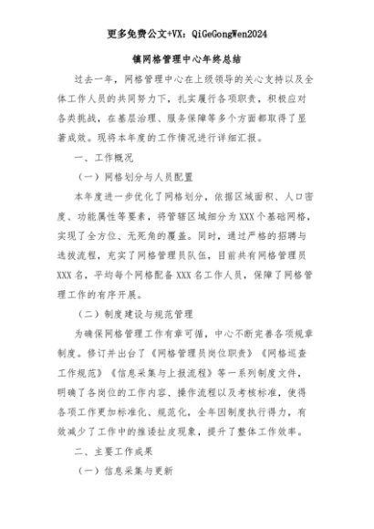 【七哥公文】2025年:镇网格管理中心年终总结+更多免费公文+VX:QiGeGongWen2024+更多免费公文+VX:QiGeGongWen2024