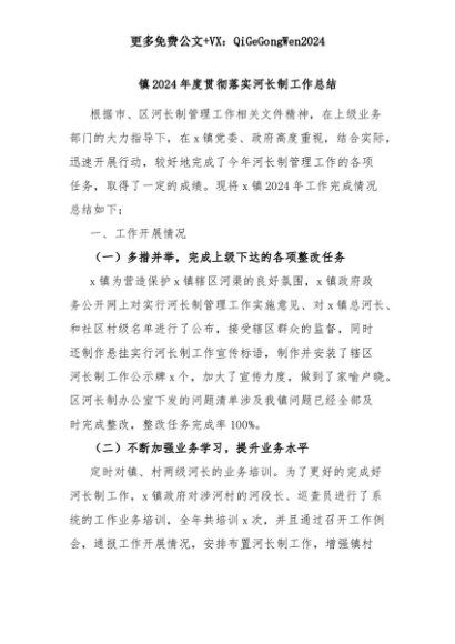 【七哥公文】2025年:镇2024年度贯彻落实河长制工作总结+更多免费公文+VX:QiGeGongWen2024+更多免费公文+VX:QiGeGongWen2024