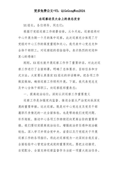 【七哥公文】2025年:在巡察动员大会上的表态发言+更多免费公文+VX:QiGeGongWen2024+更多免费公文+VX:QiGeGongWen2024