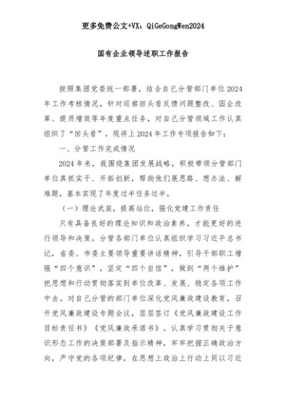 【七哥公文】2025年:国有企业领导述职工作报告+更多免费公文+VX:QiGeGongWen2024+更多免费公文+VX:QiGeGongWen2024