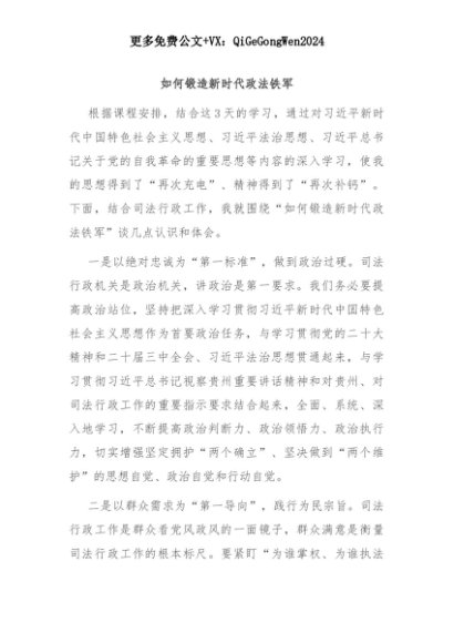 【七哥公文】2025年:如何锻造新时代政法铁军+更多免费公文+VX:QiGeGongWen2024+更多免费公文+VX:QiGeGongWen2024
