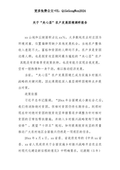 【七哥公文】2025年:关于“夹心层”农户发展困境调研报告+更多免费公文+VX:QiGeGongWen2024+更多免费公文+VX:QiGeGongWen2024