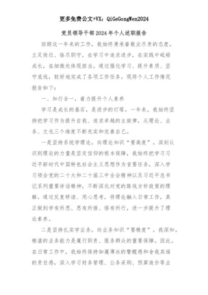 【七哥公文】2025年:党员领导干部2024年个人述职报告+更多免费公文+VX:QiGeGongWen2024+更多免费公文+VX:QiGeGongWen2024
