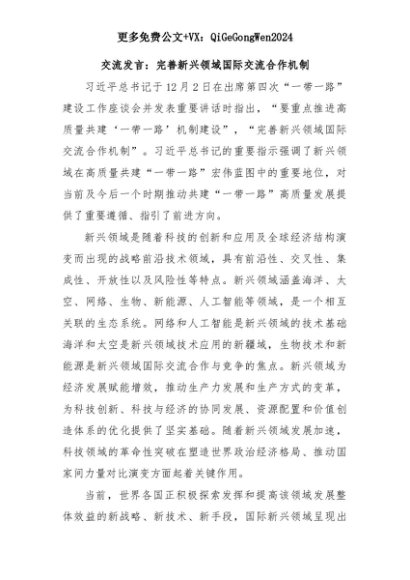 【七哥公文】2025年:交流发言:完善新兴领域国际交流合作机制+更多免费公文+VX:QiGeGongWen2024+更多免费公文+VX:QiGeGongWen2024