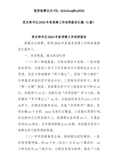 【七哥公文】2025年:(5篇)党支部书记2024年抓党建工作述职报告汇编+更多免费公文+VX:QiGeGongWen2024+更多免费公文+VX:QiGeGongWen2024